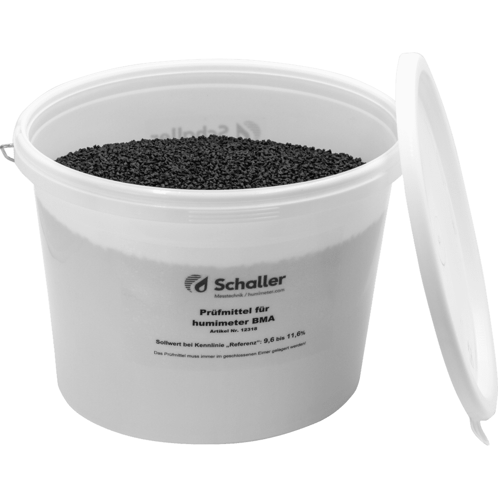 Mit dem Granulat überprüfen Sie sicher und einfach die Kalibrierung. Dazu wird die Messkammer langsam und gleichmäßig mit dem Kunststoffgranulat gefüllt und die Kennlinie „Referenz“ gewählt. Die Überprüfung erfolgt automatisch. Auf dem Display wird angezeigt, ob der Messwert im Toleranzbereich liegt.
